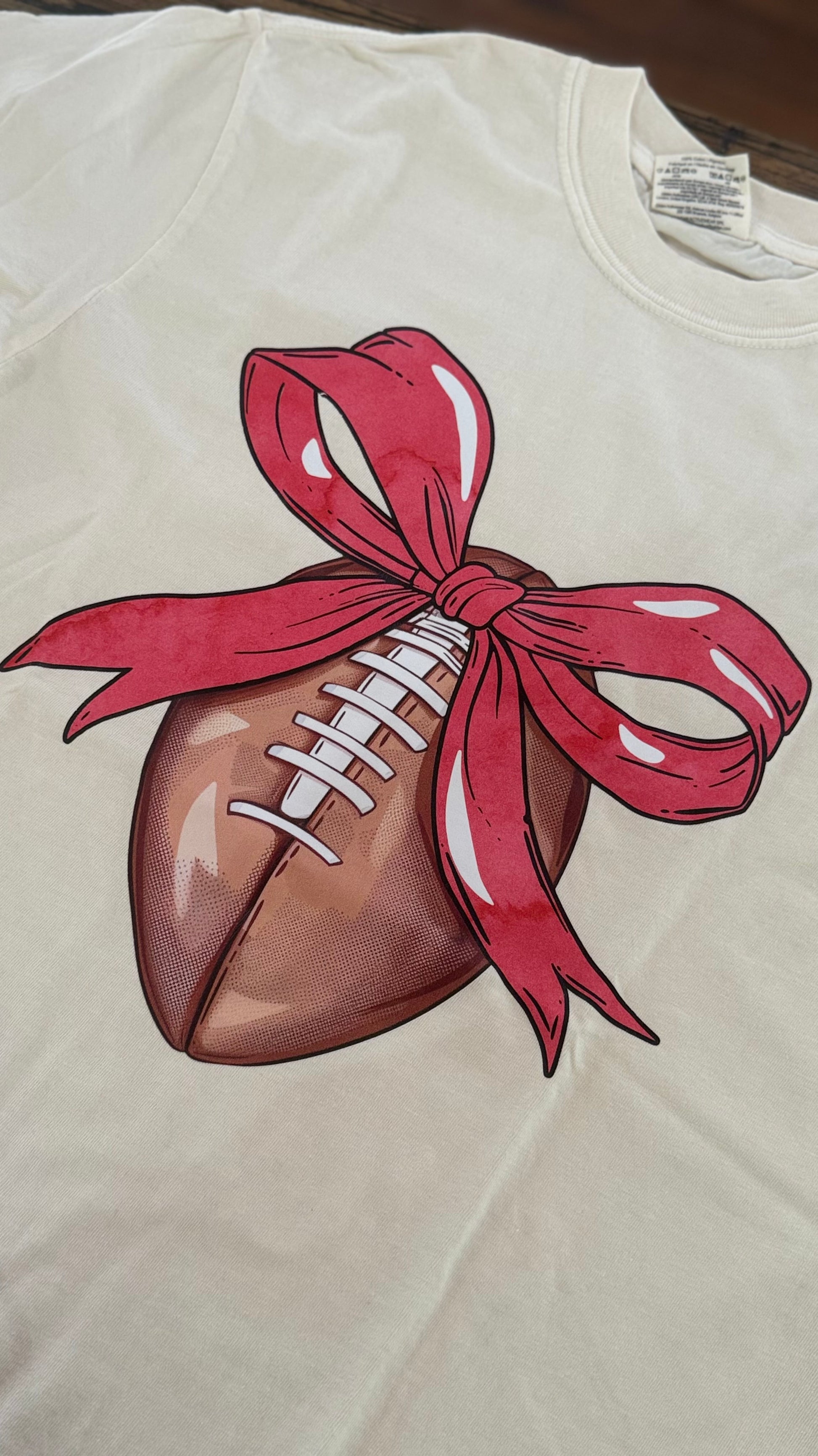 Football with Red Bow Graphic