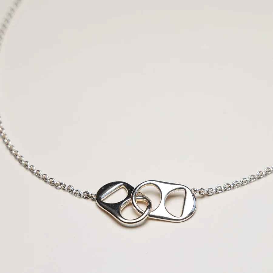 Bring on the nostalgic style with a quality jewelry piece you'll cherish and wear year-round. Our viral Soda Tab Necklace features two rhodium-plated 'soda tab' inspired pieces interlinking at the center of the chain. Add this statement piece to any necklace stack or wear it solo - either way, you're guaranteed compliments.